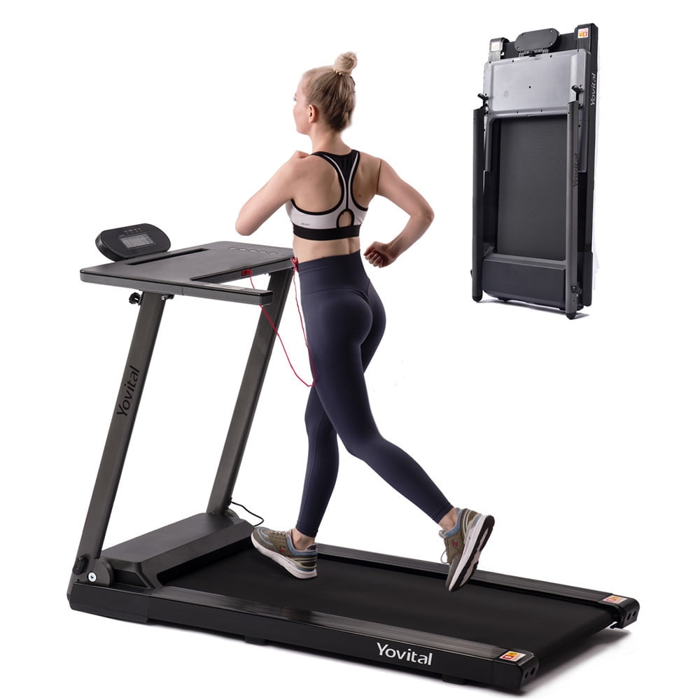 Folding Treadmills With Desk For Home Portable Electric Foldable Treadmill Machine For Running Walking Jogging 12 Preset Workout 265 Lbs Weight Capacity Walmart Com
