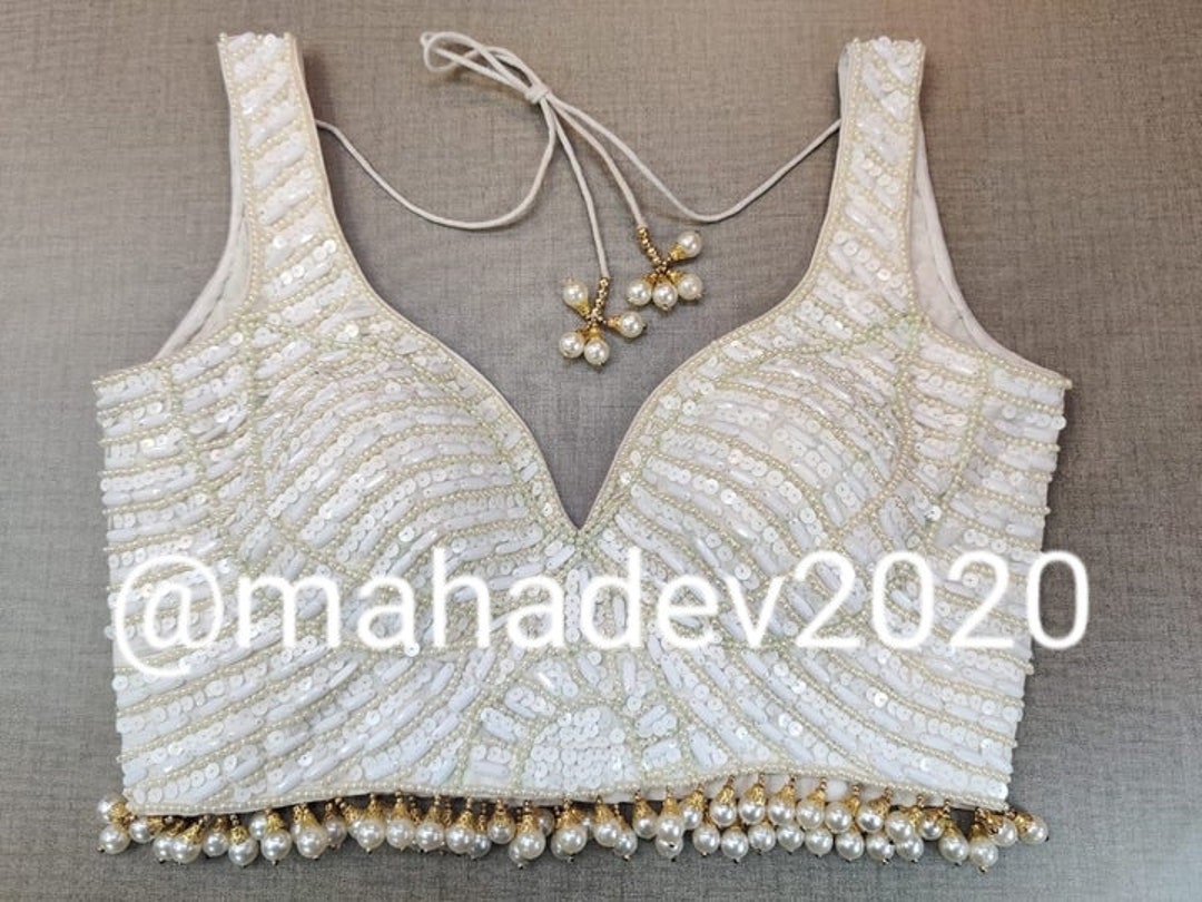 White Readymade Heavy Beaded Blouse Designer Saree Blouse Etsy
