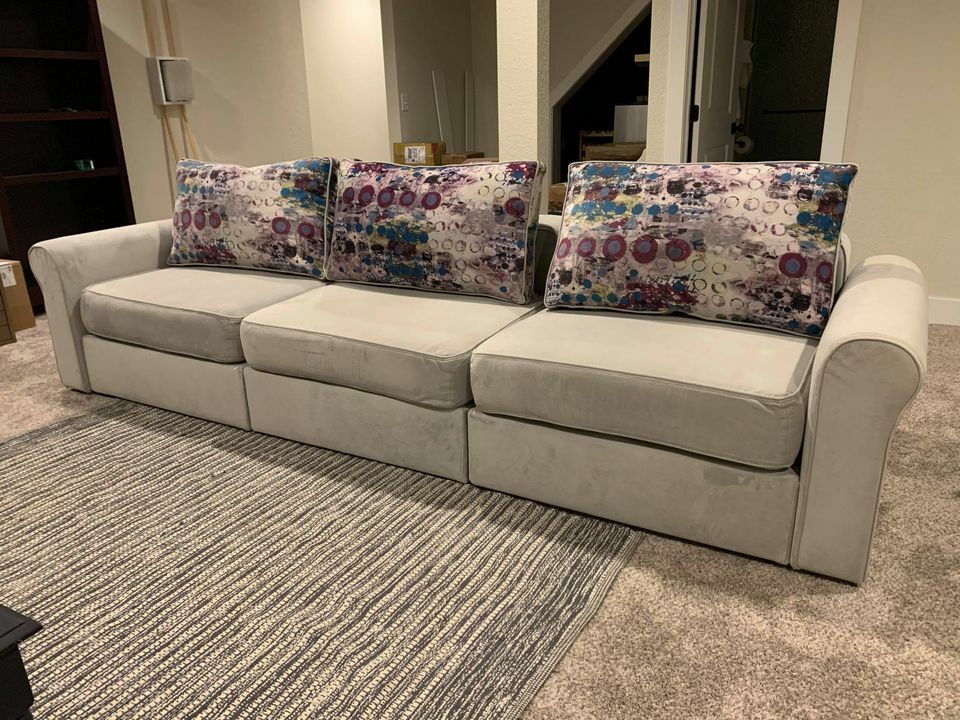 Lovesac Used Sactional Covers In Grey Micro Velvet W Graffiti Style Back Pillows Ebay